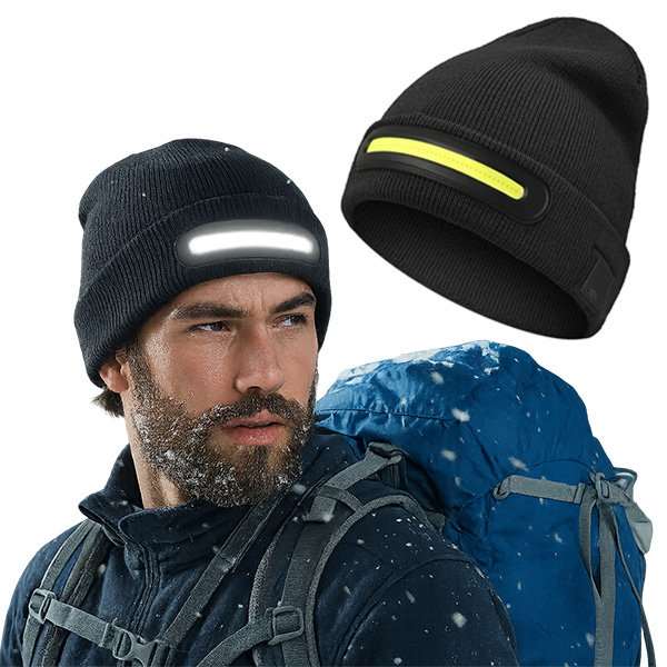 כובע צמר איכותי עם פס תאורת LED מובנה בעוצמה של 3W COB – הפתרון המושלם לתאורה hands-free בכל תנאי שטח ומזג אוויר.