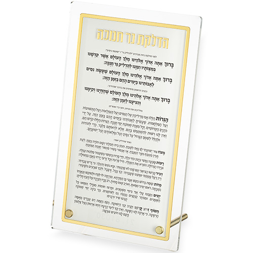 / סדר הדלקת נרות חנוכה אקריליק עומד זהב 13X22 ס"מ