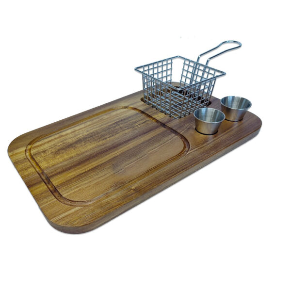 קרש הגשה עם סלסלה + 2 קעריות דגם RUSTIC