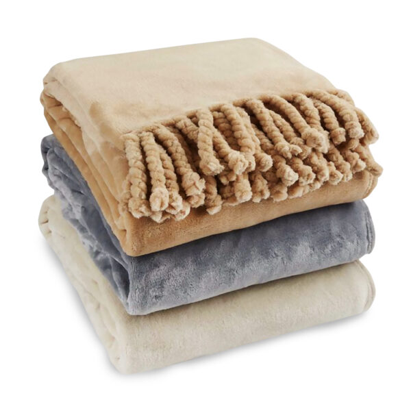 שמיכת קורל פליז עם פרנזים מגולגלים בצד הצר,