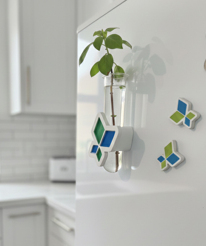 אגרטל ייחור עם גב מגנטי, ניתן לפיתוח בצרת לוגו, אייקון או אלמנט גרפי.