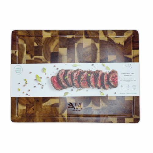 בוצ'ר לחיתוך בגודל 40X28 ס"מ בטקסטורת END GRAIN. עשוי מלוחות עץ שעברו עיבוד בעבודת יד.