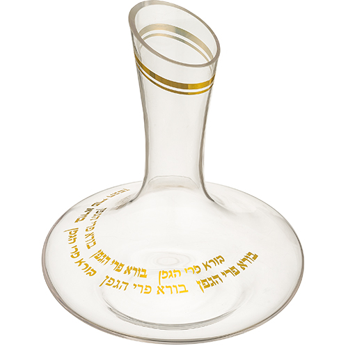 בקבוק זכוכית ליין עם "בורא פרי הגפן" זהב 26 ס"מ
