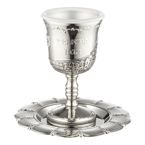 גביע קידוש מהודר 16 ס"מ "נהרות גן עדן" בגימור ניקל