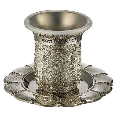 / גביע קידוש גימור ניקל פיליגרין עם ברכה "ויכלו.." 8.5 ס"מ תכולה 120 מ"ל