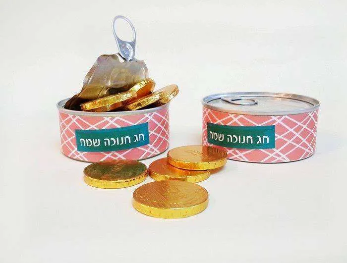 פחית טונה ממותגת ומלאה בדמי חנוכה.