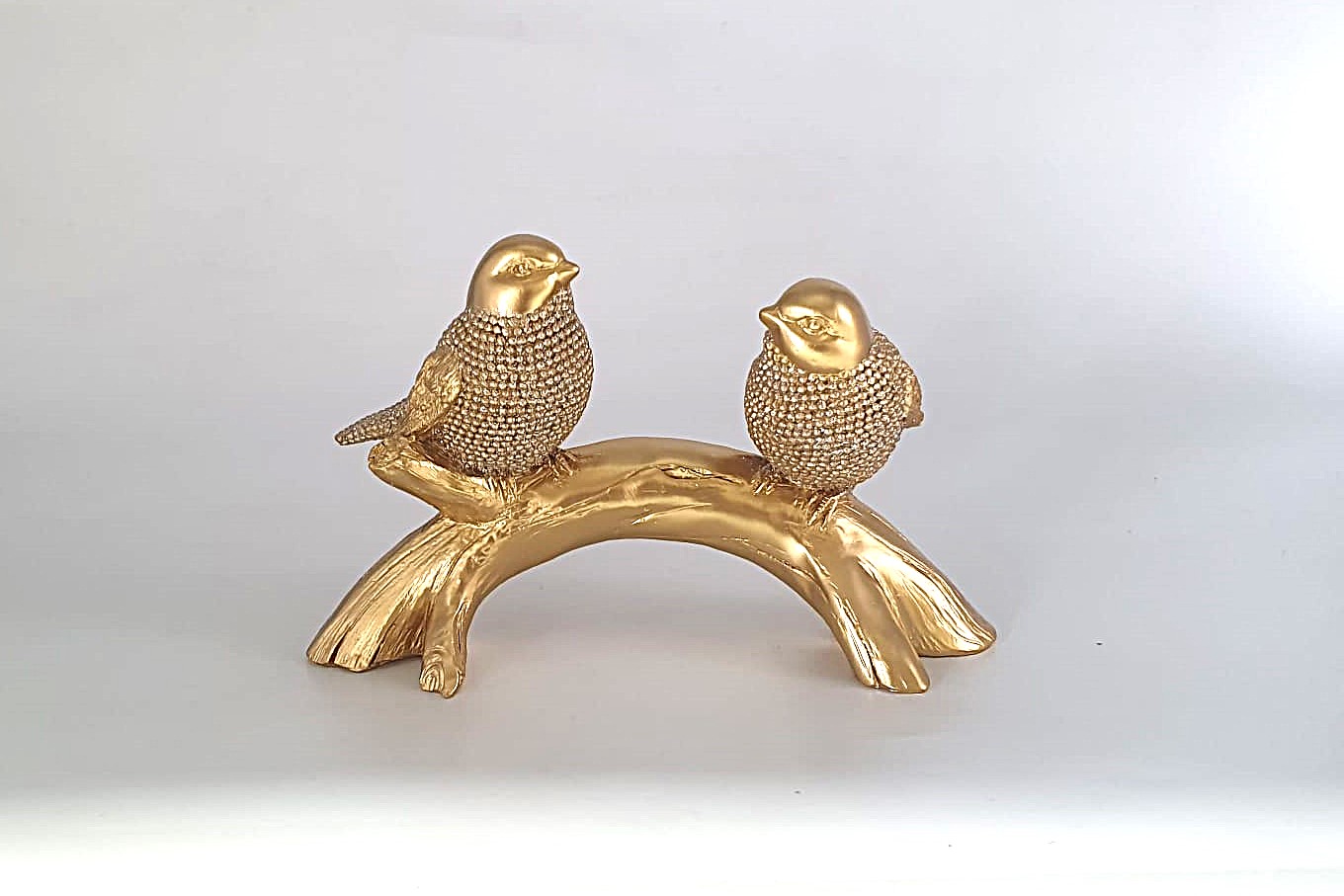 / זוג יונים מוזהבים על ענף זהב מנצנץ