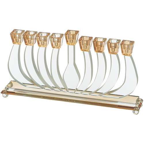 חנוכייה זכוכית עבור נרות "כותל" גווני כחול 14 ס"מ