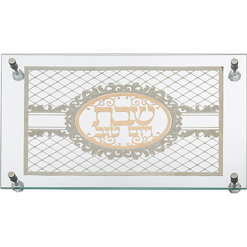 / מגש חלה מהודר מזכוכית עם פלקטה "עיטורים" 3045