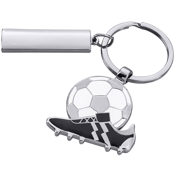 מחזיק מפתחות מתכתי "הכדורגלן" עם לוחית מלבנית למיתוג
