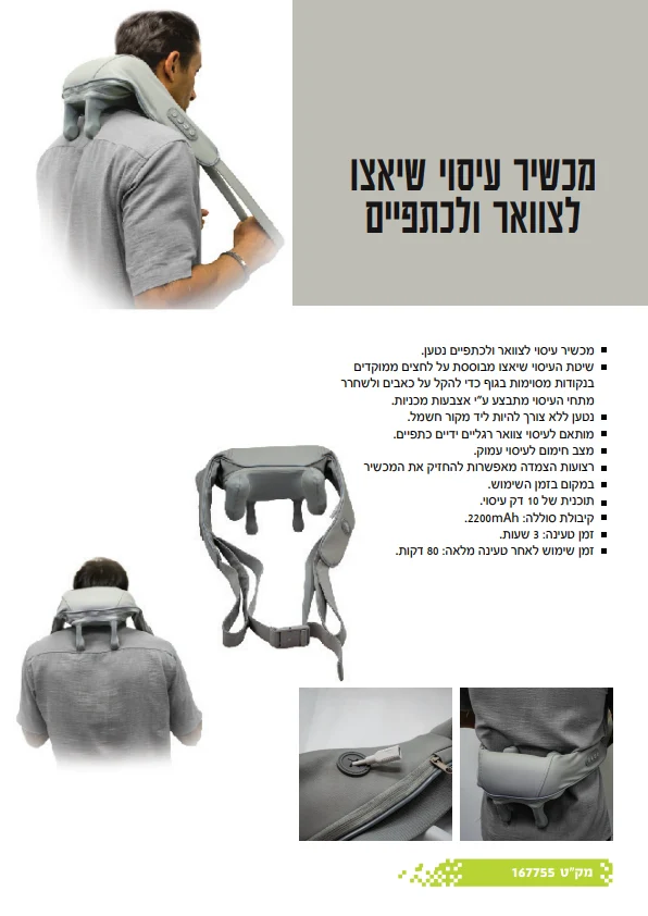 מכשיר עיסוי לצוואר ולכתפיים נטען.