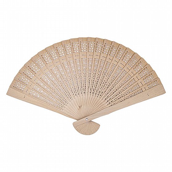 מניפה עשויה עץ במבוק עם חיתוכי לייזר ייחודיים.