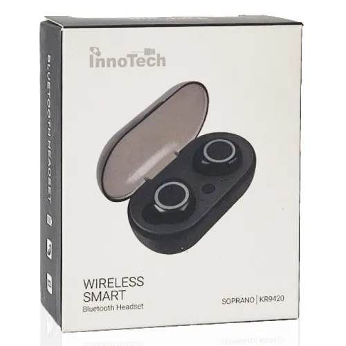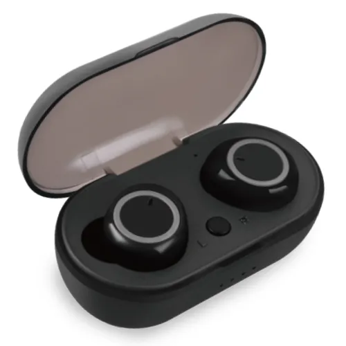 זוג אוזניות כפתור IN-EAR בטכנולוגיית TWS ומיקרופון מובנה בכל אוזניה המאפשר דיבור עם מארז הטענה מובנה נפח הסוללה 400MAH 7.2X3X4 ס"מ