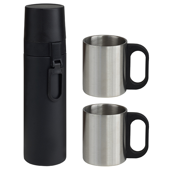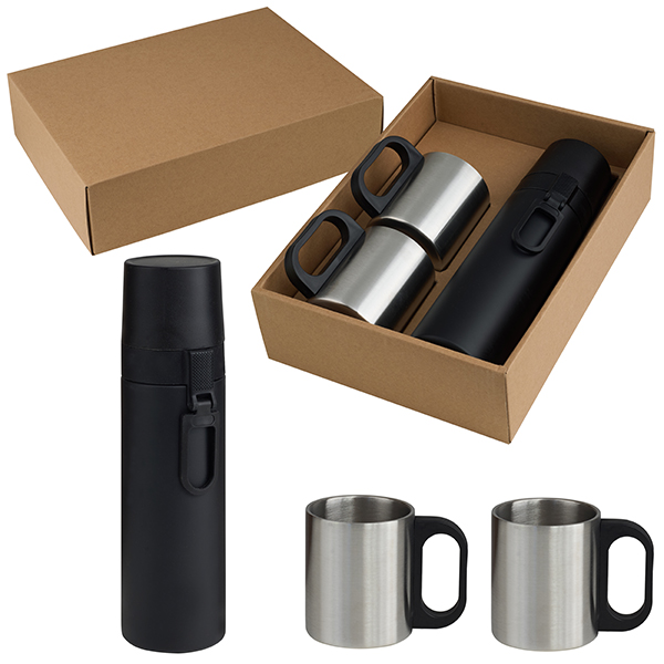 סט בקבוק תרמי מתכת עם שני ספלי נירוסטה במארז מתנה