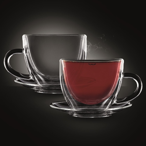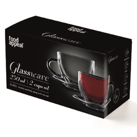 סט 2 כוסות דאבל עם צלוחית 250 מ"ל INDIA