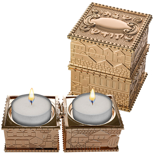 / פמוטי נסיעה זהב בקופסא עם מכסה "ירושלים" 4X9 ס"