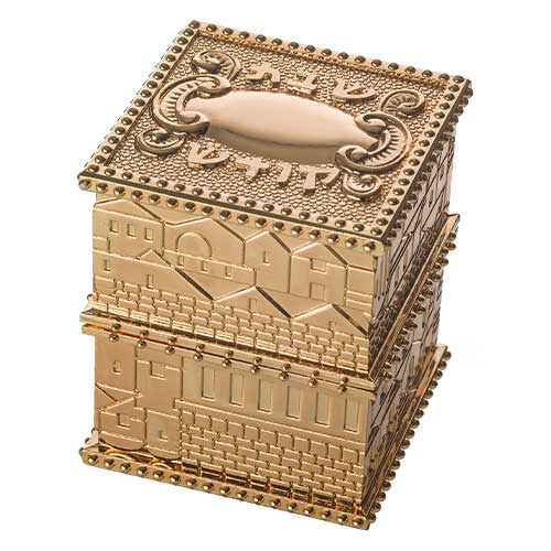 פמוטי נסיעה זהב בקופסא עם מכסה "ירושלים" 4X9 ס"