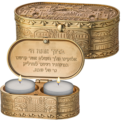 / פמוטי נסיעה זהב בקופסא עם מכסה "ירושלים" 4X9 ס"מ