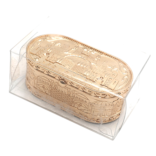 פמוטי נסיעה זהב בקופסא עם מכסה "ירושלים" 4X9 ס"מ