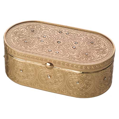 פמוטי נסיעה זהב בקופסא עם מכסה "פיליגרין" משובץ