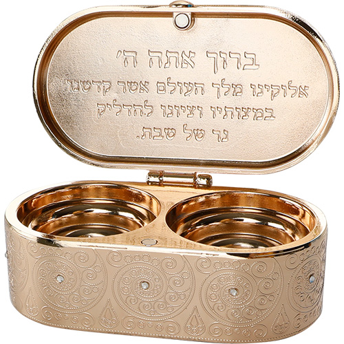 / פמוטי נסיעה זהב בקופסא עם מכסה "פיליגרין" משובץ