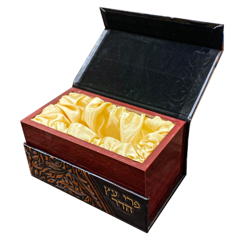 קופסא לאתרוג עץ ועור עם ידית מתכת