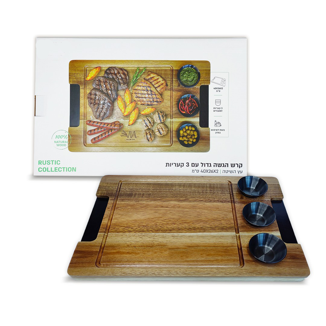 / קרש הגשה גדול עם 3 קעריות דגם RUSTIC