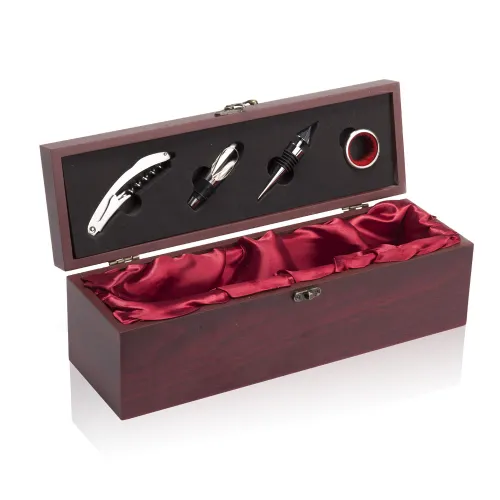 מארז עץ מהודר לבקבוק יין עם מגוון אביזרי יין