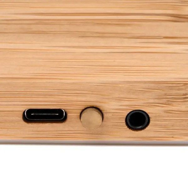 גוף עץ וממברנה גלויה V5 DC : 5.0 Bluetooth. סוללת ליתיום נטענת. מרחק: עד 10 מטר. טעינת USB. מידות 6*6*6 סמ