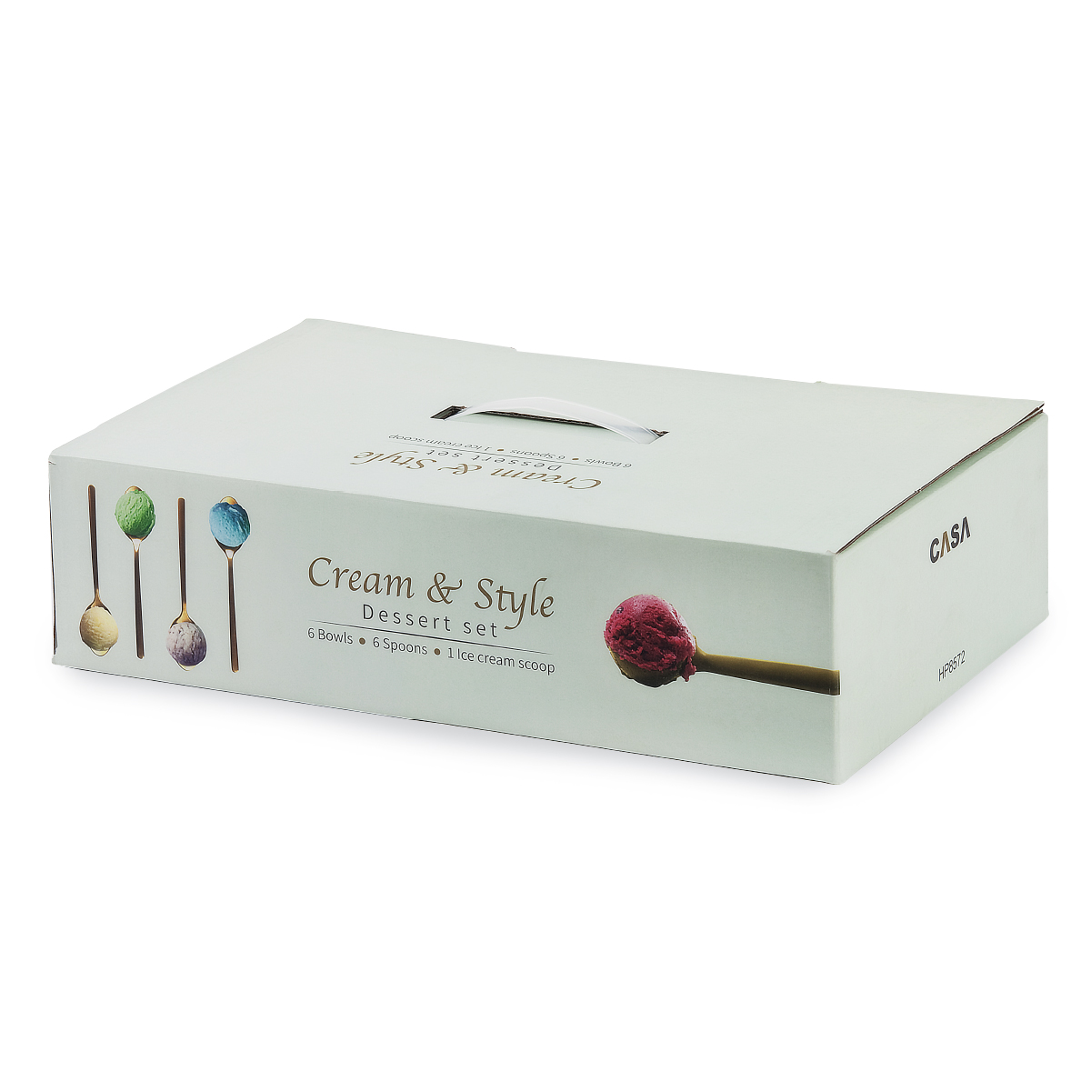 Cream & Style סט גביעי זכוכית, כפיות וכף גלידה